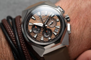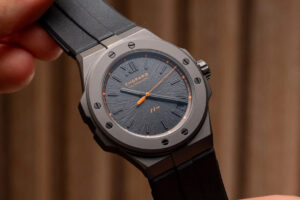 Основной ремешок здесь выполнен из текстурированной кожи, а сменный – из каучука. Ориентировочная стоимость часов составляет CHF 37,300.