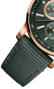 Ремешок с покрытием из зеленого каучука, классическая застежка из розового золота 750-й пробы.