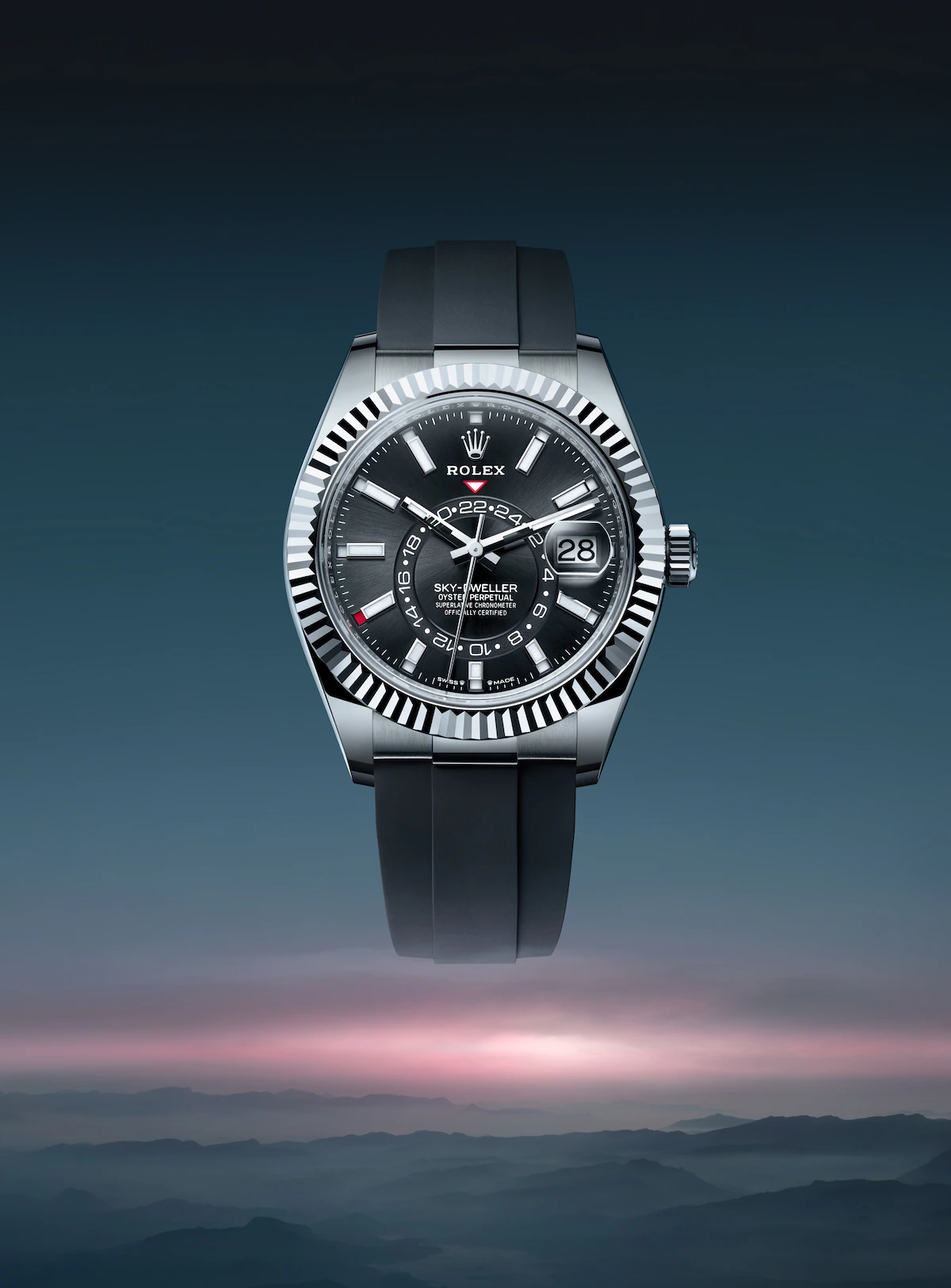 Часы Sky‑Dweller с отображением времени сразу двух часовых поясов и годовым календарем являются элегантным и ценным спутником заядлого путешественника. Гамма обновлена благодаря многим нововведениям, напоминающим о том, что для Rolex совершенство проявляется даже в малейших деталях.