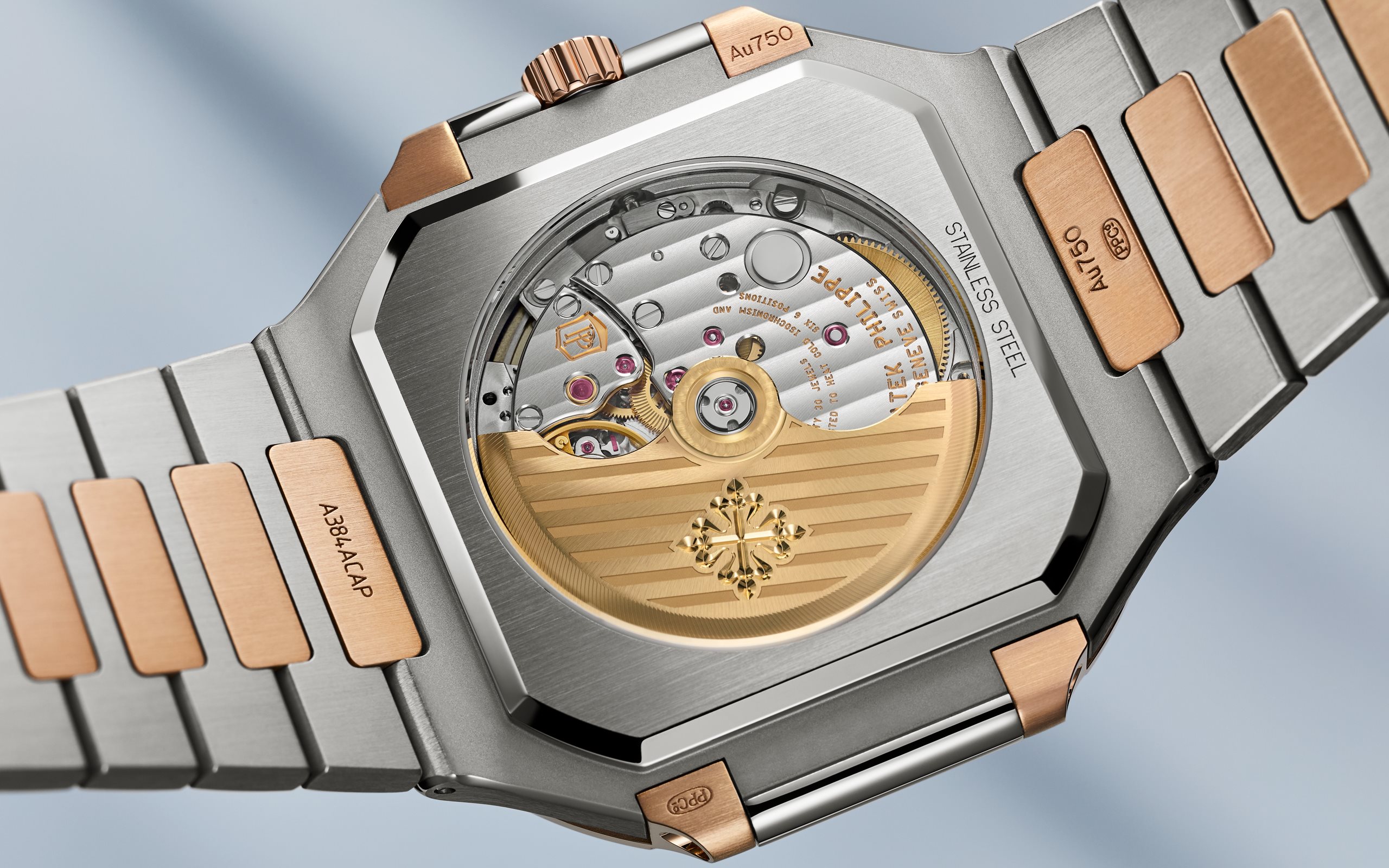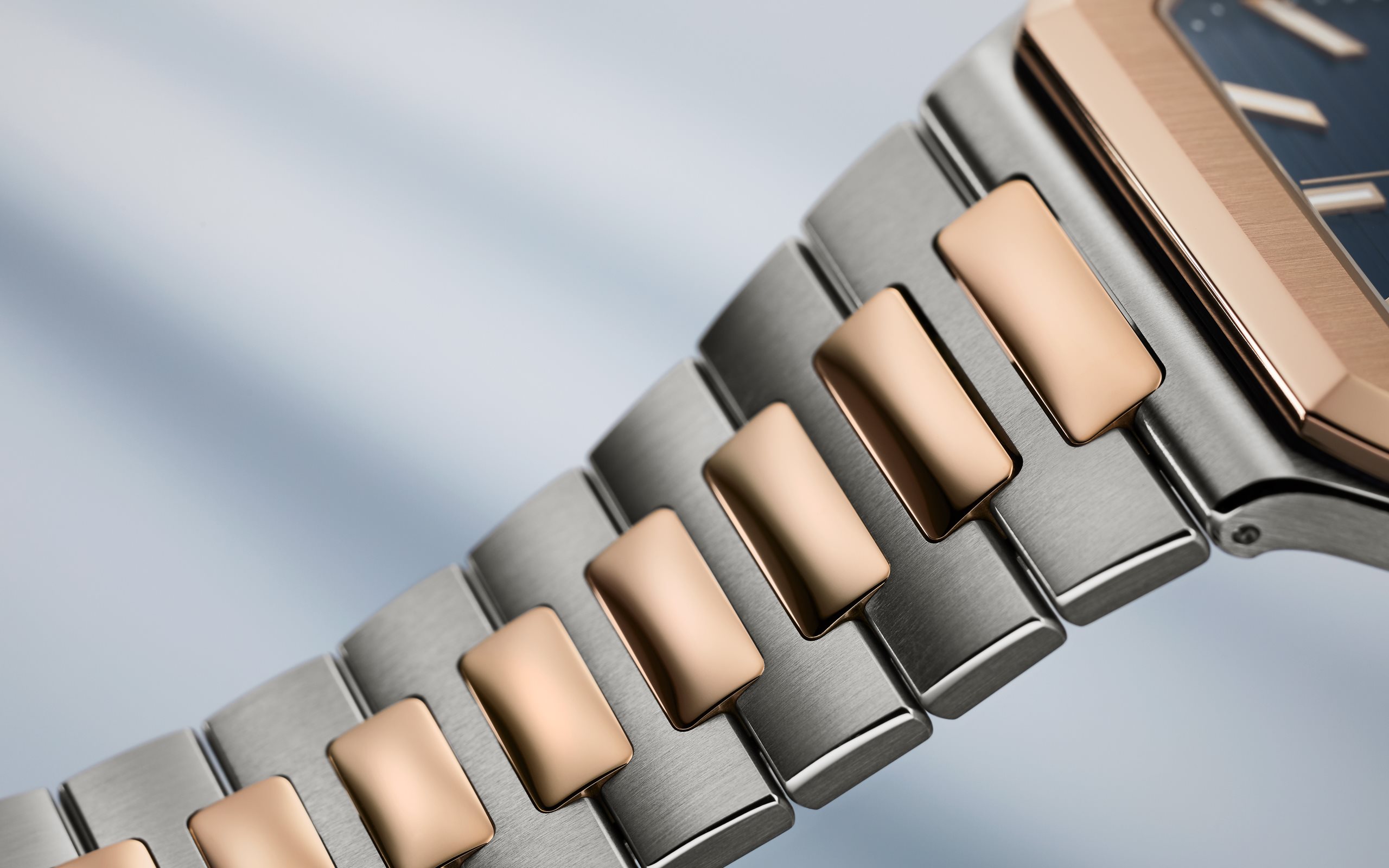 Элегантный смелый дизайн новой коллекции Cubitus от Patek Philippe превосходно демонстрирует двухцветная версия из розового золота и стали с чередованием полированных и вертикально сатинированных поверхностей.