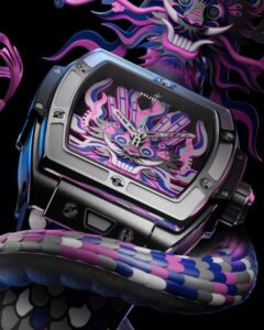Бренд с самой взрывной коллекцией в истории часов представляет громкую и сногсшибательную модель Spirit of Big Bang Titanium Dragon. Поддерживая предпочтение бренда сочетать разнородные материалы в корпусах смелых форм, Hublot предложила китайской художнице Чэнь Фэньвань Spirit of Big Bang в качестве чистого холста для проявления своего творчества. Используя тысячелетнюю китайскую художественную форму вырезания из бумаги, оригинальный дизайн бумаги Чэнь Фэньвань был интерпретирован в многослойном циферблате и змеевидном браслете-маркетри, которые оживают благодаря динамичным формам дракона.