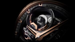 And now we present the new Excalibur Monobalancier, a new collection of watches reimagined for the modern world with sophistication and flair. Featuring clear cut lines, a fluted bezel and sharp notches, this 42mm watch now displays the House’s signature star, which has been reshaped to float freely above the case, and the microrotor debuts in a new modern shape with the Roger Dubuis monogram etched on it. The RD 720SQ calibre’s performance and durability are also maximized by a number of mechanical improvements, including the use of two state-of-the-art microrotor materials and an increased power reserve of up to 72 hours. Available in an EON GOLD™ case and with a black calfskin strap with a patented quick release system for easy interchangeability.